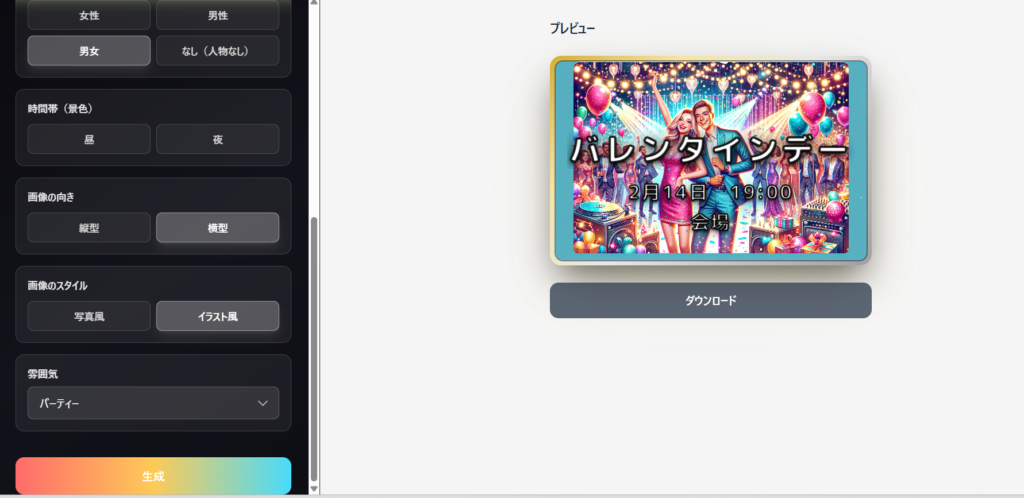 サービスの内容はシンプルに生成AIでフライヤーを作ってもらうというものです。